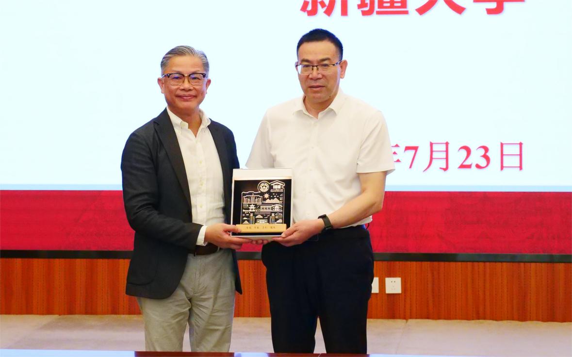 粟智与莫启明及澳门高校教师代表团互赠纪念礼物,并合影留念。